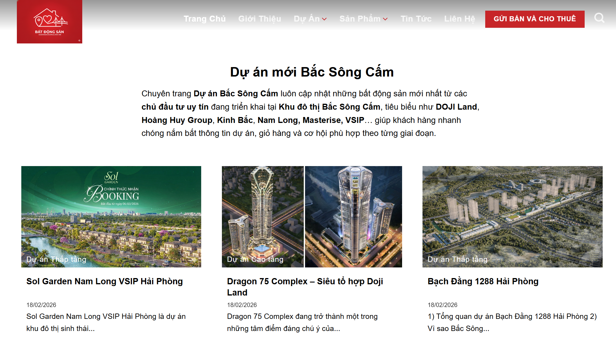 Một trong những tín hiệu đáng chú ý của một thị trường đang phát triển mạnh là sự tham gia đồng thời của nhiều chủ đầu tư. Website cho biết chuyên trang này liên tục cập nhật các bất động sản mới nhất từ những đơn vị như DOJI Land, Hoàng Huy Group, Kinh Bắc, Nam Long, Masterise và VSIP tại khu đô thị Bắc Sông Cấm. Khi một khu vực thu hút được nhiều thương hiệu lớn cùng phát triển, điều đó thường phản ánh mức độ kỳ vọng cao của thị trường vào tiềm năng tăng trưởng, khả năng hình thành cộng đồng dân cư và sức sống đô thị của khu vực đó.
